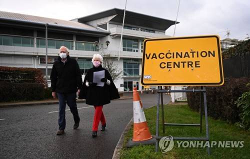 epa08931365 An elderly couple leaves a mass vaccination center in Epsom, Britain, 11 January 2021. Britain opened a number of mass vaccination centers across the country 11 January, as the country ramped up its vaccination program. Britain's National Health Service (NHS) is coming under severe pressure as coronavirus disease (COVID-19) hospital admissions continue to rise across the UK. EPA/ANDY RAIN