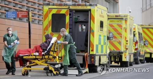 Medical staff treat an arriving patient at the Royal London Hospital in London, Monday, Jan. 11, 2021 during England's third national lockdown to curb the spread of coronavirus. The government has imposed a national lockdown while allowing schools to open, with freedom to exercise and shop for food and essential items.(AP Photo/Kirsty Wigglesworth)