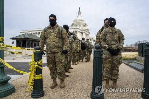epa08931508 Members of the New York National Guard form up on the East Front of the US Capitol in Washington, DC, USA, 11 January 2021. Speaker of the House Nancy Pelosi has said she will introduce articles of impeachment today against US President Donald J. Trump for incitement of insurrection following the attack on the Capitol last week as lawmakers worked to certify Joe Biden as the next President of the United States. EPA/SHAWN THEW