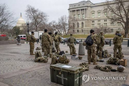 epa08931507 Members of the New York National Guard form up at the National Archives near the US Capitol in Washington, DC, USA, 11 January 2021. Speaker of the House Nancy Pelosi has said she will introduce articles of impeachment today against US President Donald J. Trump for incitement of insurrection following the attack on the Capitol last week as lawmakers worked to certify Joe Biden as the next President of the United States. EPA/SHAWN THEW