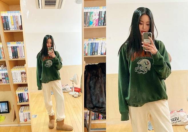 사진 속에는 그린 맨투맨에 화이트 팬츠, 그리고 카라멜 컬러 어그부츠로 편안한 멋을 낸 오연서의 모습이 담겨있다. 거울 셀카로 전신을 담아낸 그는 작은 얼굴과 우월한 기럭지로 눈길을 끌었다.