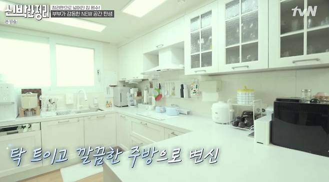 한편 그릇들로 가득했던 주방 또한 극적인 변화를 겪었다. 새로이 정리된 주방은 탁 트이고 깔끔한 주방으로 변모했다.