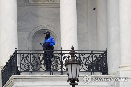 epa08931570 A US Capitol Police officer stands guard on the East Front of the US Capitol in Washington, DC, USA, 11 January 2021. Speaker of the House Nancy Pelosi has said she will introduce articles of impeachment today against US President Donald J. Trump for incitement of insurrection following the attack on the Capitol last week as lawmakers worked to certify Joe Biden as the next President of the United States. EPA/SHAWN THEW