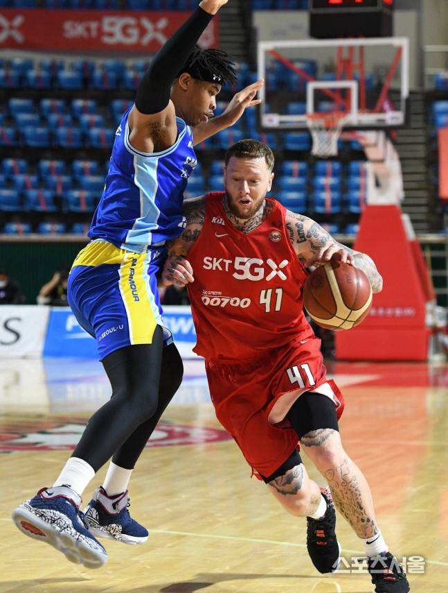 SK 미네라스가 11일 서울 잠실학생체육관에서 진행된 삼성과이 경기에서 골밑으로 돌파하고있다. 2021.01.11. 김도훈기자 dica@sportsseoul.com