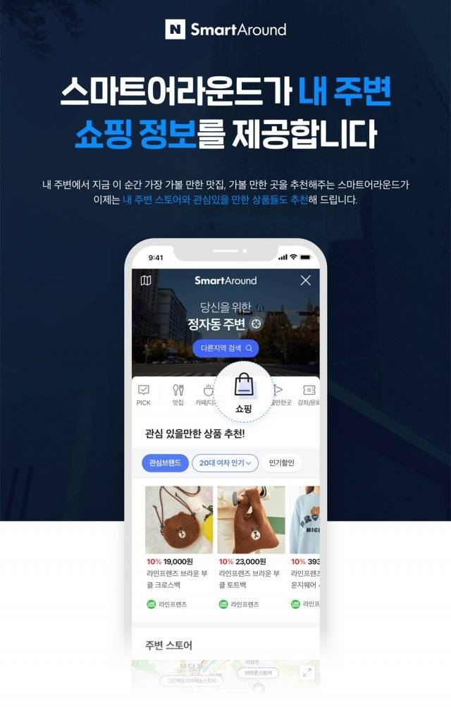 네이버는 주변 맛집, 강좌 등을 소개하는 인공지능(AI) 추천 서비스 스마트어라운드에 쇼핑을 추가한다고 11일 밝혔다.