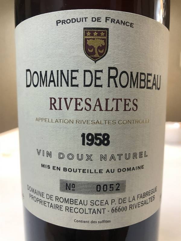 Domaine de Rombeau Rivesaltes Vin Doux Naturel 1958