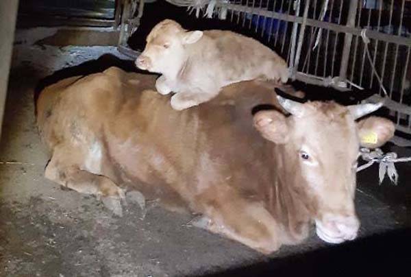 | ▲ 어미소 등 위로 올라온 송아지. |