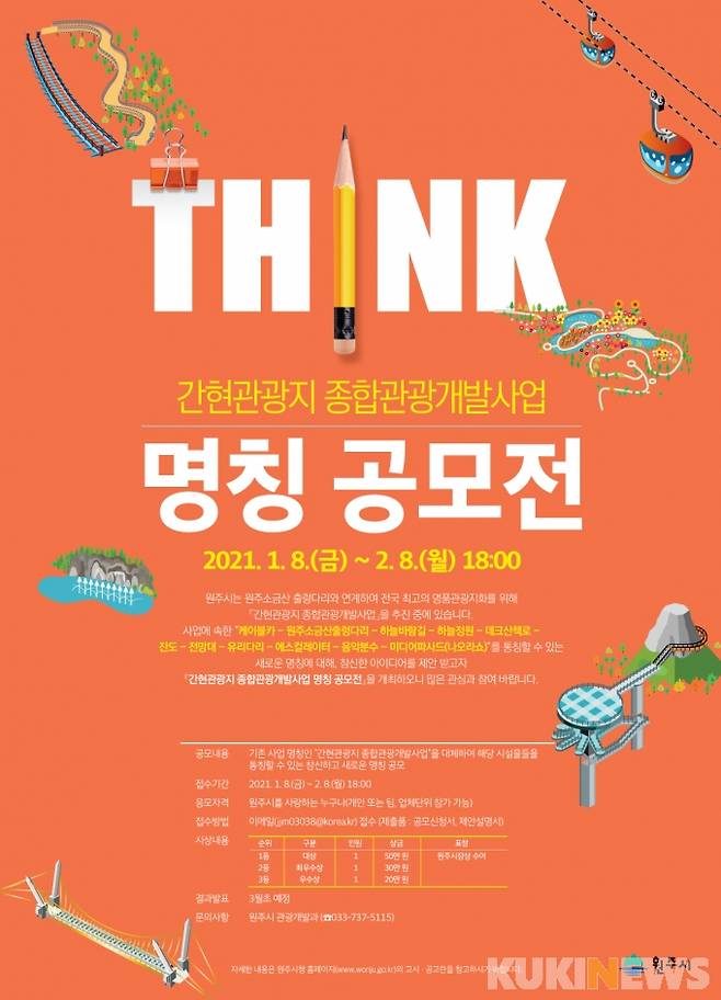 [원주=쿠키뉴스] 박하림 기자 =강원 원주시 '간현관광지 종합관광개발사업'의 새로운 명칭 지정을 위한 공모전이 실시된다.