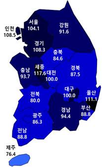 수도권·지방광역시 중심으로 높은 수치 보여