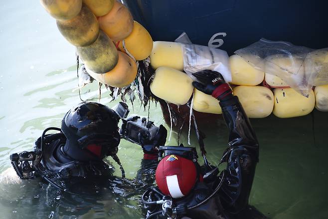 선박 충돌 감식 중인 해양경찰