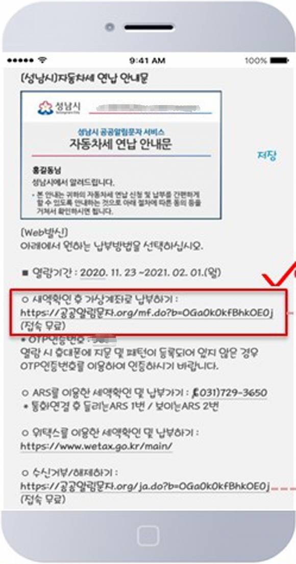 성남시 전국 첫 자동차세 연납 스마트폰 안내 서비스