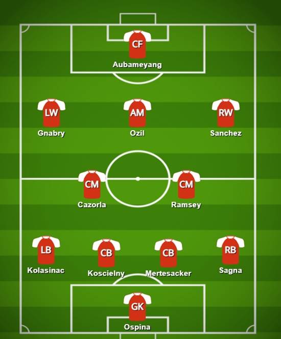 포메이션은 4-2-3-1이었다. 외질은 최전방에 피에르 에메릭 오바메양, 2선엔 본인을 포함해 좌우에 세르쥬 그나브리, 알렉시스 산체스를 놨다. 수비형 미드필더엔 산티 카솔라, 아론 램지가 자리했고 포백은 세아드 콜라시나츠, 로랑 코시엘니, 페어 메르테사커, 바카리 사냐를 낙점했다. 골키퍼는 다비드 오스피나다.
