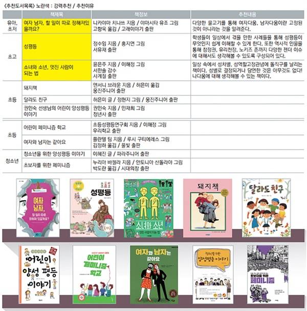 | ▲ 서울여성회가 추천하는 '성평등' 관련 성교육 그림책 |