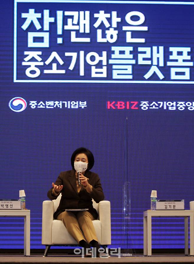 [이데일리 김태형 기자] 박영선 중소벤처기업부 장관이 12일 오후 서울 여의도 중소기업중앙회에서 열린 '참 괜찮은 중소기업 플랫폼' 출시 행사에서 인사말을 하고 있다.