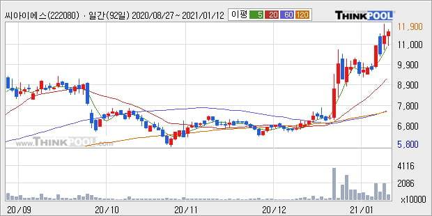 '씨아이에스' 52주 신고가 경신, 단기·중기 이평선 정배열로 상승세