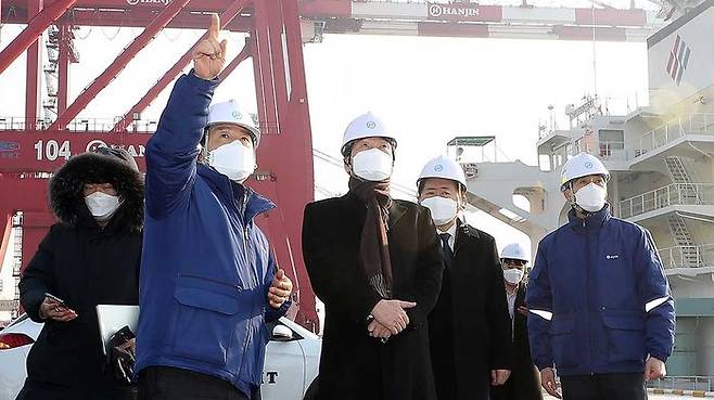 더불어민주당 이낙연 대표가 인천 신항을 방문해 항만 수출입 현황을 점검하고 근무자들을 격려했습니다.