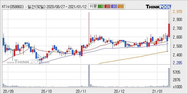 'KTis' 52주 신고가 경신, 단기·중기 이평선 정배열로 상승세