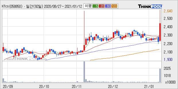 'KTcs' 52주 신고가 경신, 주가 상승세, 단기 이평선 역배열 구간