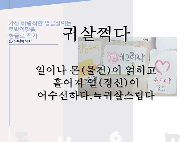 | [토박이말 살리기]1-7 귀살쩍다 |