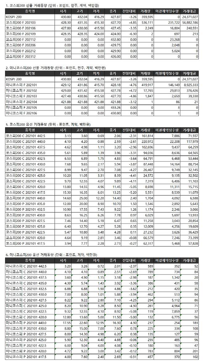 [표]거래소 주가지수선물·옵션시세표(1/12)