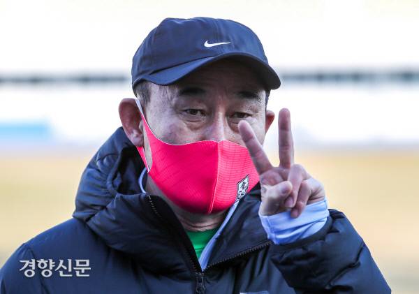 김학범 감독, 승리의 'V' [경향포토]