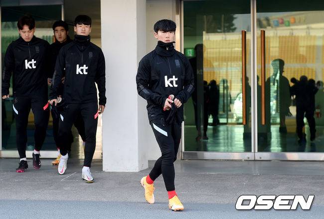축구 올림픽대표팀 엄원상을 비롯한 선수들이 훈련을 위해 경기장으로 들어서고 있다. / dreamer@osen.co.kr