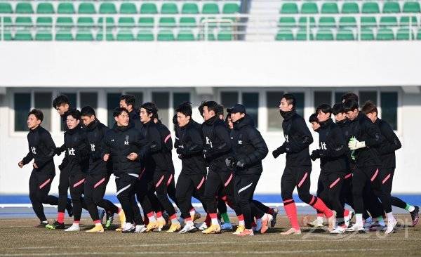 축구 올림픽대표팀이 12일 강원도 강릉종합운동장에서 도쿄올림픽을 대비한 새해 첫 소집 훈련을 하고 있다.