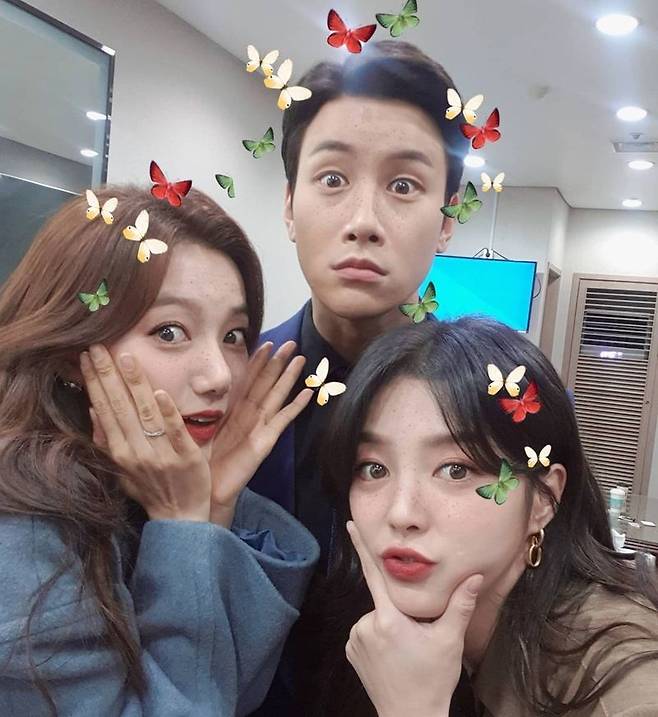 공개된 사진 속 이채영은 '비밀의 남자'에서 함께 출연중인 엄현경, 이시강과 함께 셀카를 찍은 모습이다.