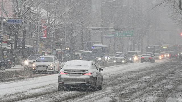 수도권 등 중부 지역에 내린 눈으로 교통혼잡이 예상됩니다. 눈이 올 때 가시거리가 짧아져 운전할 때 충분한 차간 거리 확보가 필요합니다.