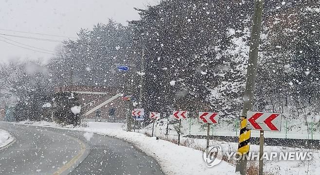 (태안=연합뉴스) 이은파 기자 = 12일 충남 태안군 소원면 의항리에 많은 눈이 내리고 있다. 태안에는 이날 오후 3시를 기해 대설주의보가 발효됐다. 2021.1.12
