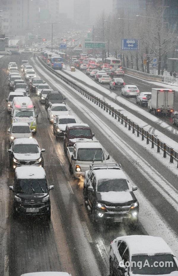서울 또 눈, 꼬리에 꼬리를 물고 [DA포토]