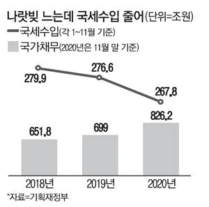 작년 11월까지 세수 9조줄어..국가채무 826조로 사상 최대