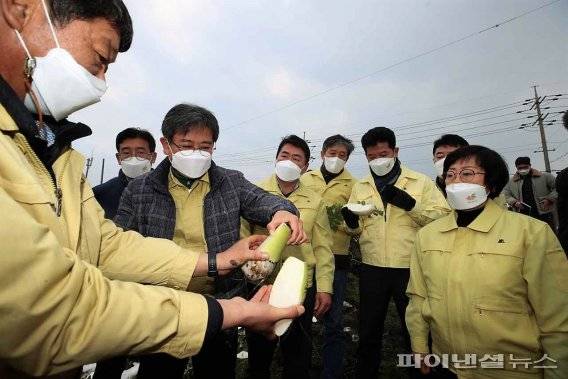 이날 고영권 제주도 정무부지사는 월동무 재배지역을 방문해 피해상황을 살펴보고 지원 방안을 논의했다.