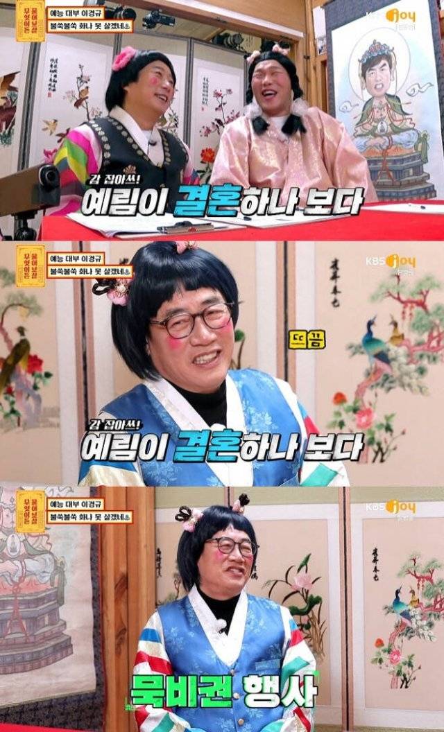 이예림의 결혼설은 전날 방송된 KBS Joy ‘무엇이든 물어보살’을 통해 불거졌다. 앞서 해당 방송에서 이경규는 점괘를 위해 깃발을 뽑았다. 선택한 깃발에 신랑·신부가 그려져 있자 이수근은 “올해 좋은 소식 있겠네”라고 했다.