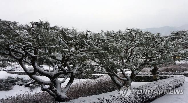(보령=연합뉴스) 이은파 기자 = 12일 충남 보령시 명천동 보령시청에 많은 눈이 내리고 있다. 보령에는 이날 오후 5시 10분을 기해 대설주의보가 발효됐다. 2021.1.12