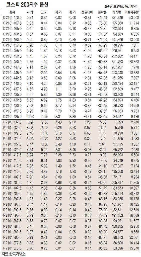 - [표]코스피200지수 옵션 시세(1월 8일)