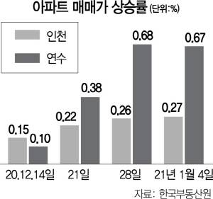 인천은 수도권 대부분의 지역을 규제지역으로 묶었던 지난 6·17 대책 이후 상대적으로 상승세가 주춤했지만 수도권 전세난이 본격화되면서 가격이 오르기 시작했다. 또 인접 지역인 김포와 파주 등의 집값이 급등한 영향도 있다는 분석이 나온다.