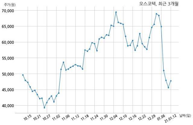 한편, 오스코텍은 장 마감 이후 해당 기업공시를 발표했으며 오늘 종가가 47,800원, 거래량은 1,126,481주로, 직전 거래일 대비 2,200원(+4.82%) 상승했다.
