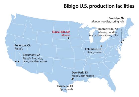 The company currently has seven facilities in the United States producing Bibigo products: Two each in California and Texas and one each in Ohio, New York and New Jersey. Five of those plants currently produce mandu.