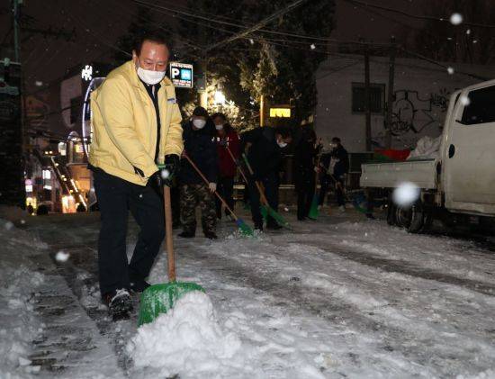 유동균 마포구청장은 “주민들의 퇴근길 혼란과 빙판길 안전사고를 최소화하기 위해 긴급히 가용 가능한 인력을 모두 제설작업에 투입했다”고 말했다.