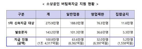 소상공인 버팀목 자금, 첫날 101만명에 1.4조 지급