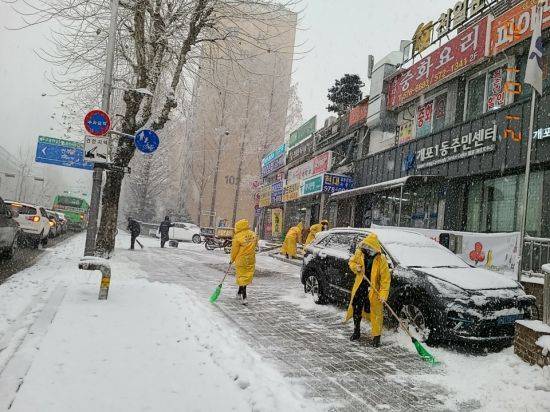 구는 퇴근시간 혼잡을 대비해 주요 출퇴근길과 시민들이 오가는 정류장 및 도로 등에 쌓인 눈을 치워 안전관리 및 피해예방에 만전을 기하고 있다.