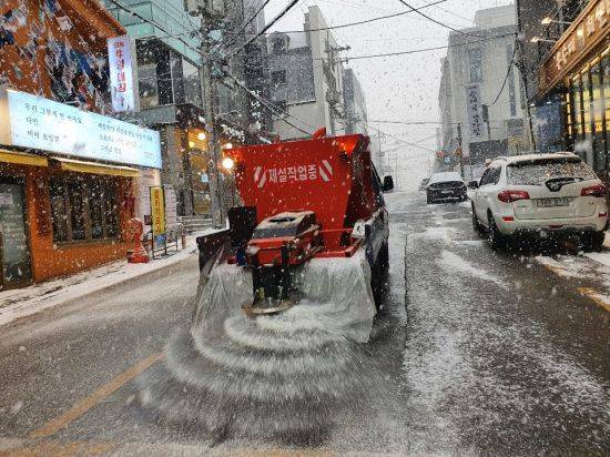 지역내 주요 간선도로 및 이면도로에는 총 62대의 제설 장비가 투입됐으며 급경사 지역과 취약도로에는 적설과 도로 결빙을 예방하기 위해 제설제를 미리 살포했다.