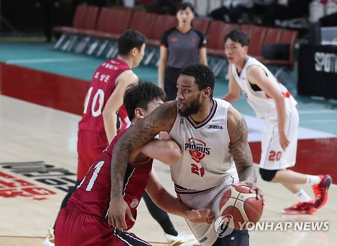 (창원=연합뉴스) 김동민 기자 = 12일 경남 창원시 의창구 창원체육관에서 열린 '2020-2021 현대모비스 프로농구' 창원 LG 세이커스와 울산 현대모비스 피버스의 경기. 현대모비스 숀롱이 드리블하고 있다. 2021.1.12