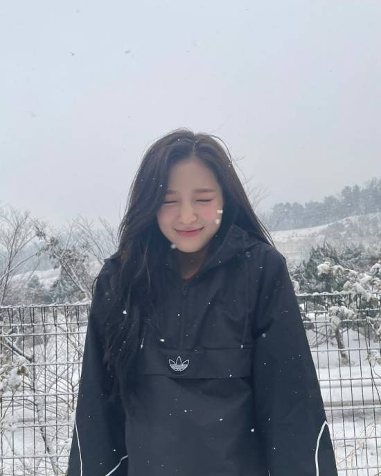 사진 속 아린은 내리는 눈을 보며 즐거워하는 모습을 보이고 있다.