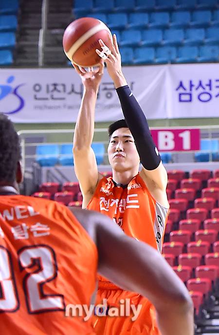[마이데일리 = 인천 한혁승 기자] 전역 후 첫 경기인 전자랜드 정효근이 12일 오후 인천 삼산월드체육관에서 열린 2020-2021 프로농구 전자랜드-KGC 경기에서 첫 득점을 올리고 있다.- ⓒ마이데일리(www.mydaily.co.kr). 무단전재&재배포 금지 -