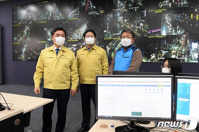 (서울=뉴스1) = 서정협 서울시장 권한대행이 수도권 지역에 폭설이 내린 12일 오후 서울시청 제설대책상황실을 찾아 제설상황을 보고받고 있다.(서울시 제공) 2021.1.12/뉴스1