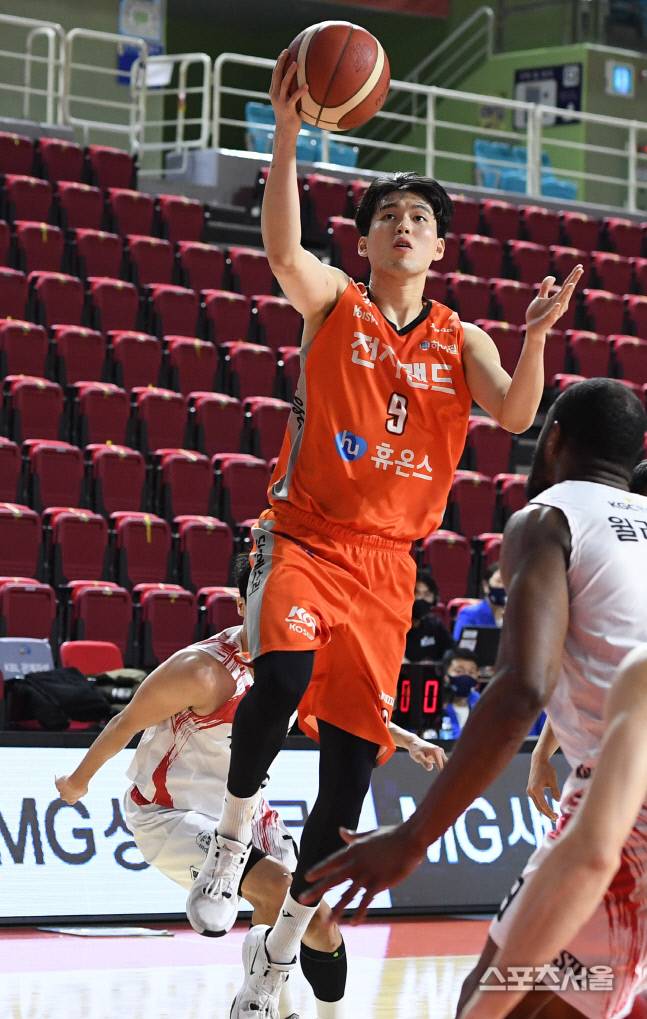 전자랜드의 전현우가 12일 인천 삼산체육관에서 진행된 KGC와의 경기에서 레이업슛을 시도하고있다. 2021.01.12. 김도훈기자 dica@sportsseoul.com
