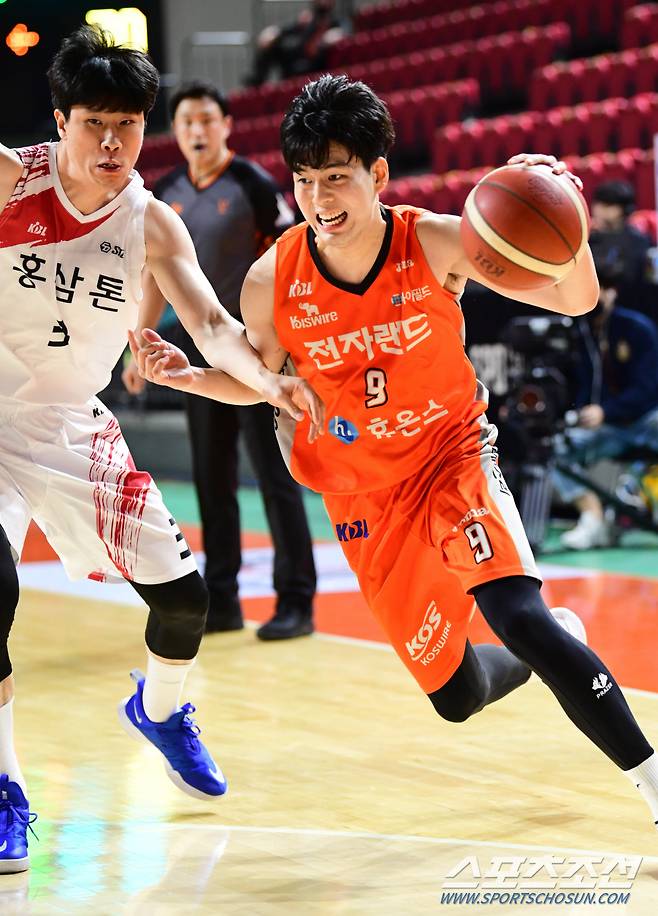 2020-2021 프로농구 인천전자랜드와 안양KGC의 경기가 12일 인천삼산실내체육관에서 열렸다. 인천 전자랜드 전현우가 안양KGC 박형철의 수비사이로 돌파를 시도하고 있다. 인천=최문영 기자 deer@sportschosun.com /2021.01.12/