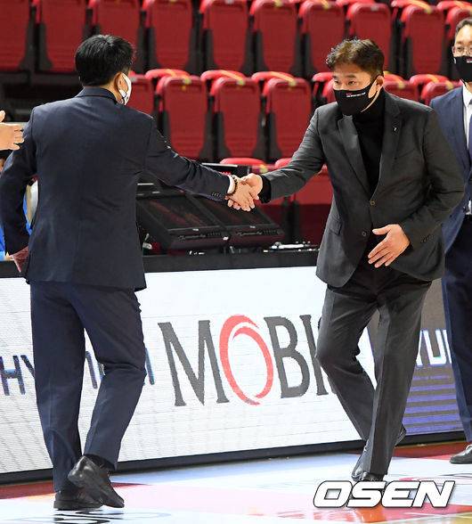 김승기 감독-유도훈 감독,'멋진 경기였어요' [사진]